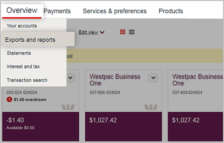 Yes. The steps used to export transaction lists, payees and accounts is the same for both business and personal customers using the Westpac App or Online Banking.