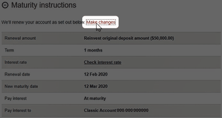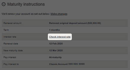 If you haven’t provided instructions, your Term Deposit will be renewed for another term for the same length, which may be at lower interest rate.