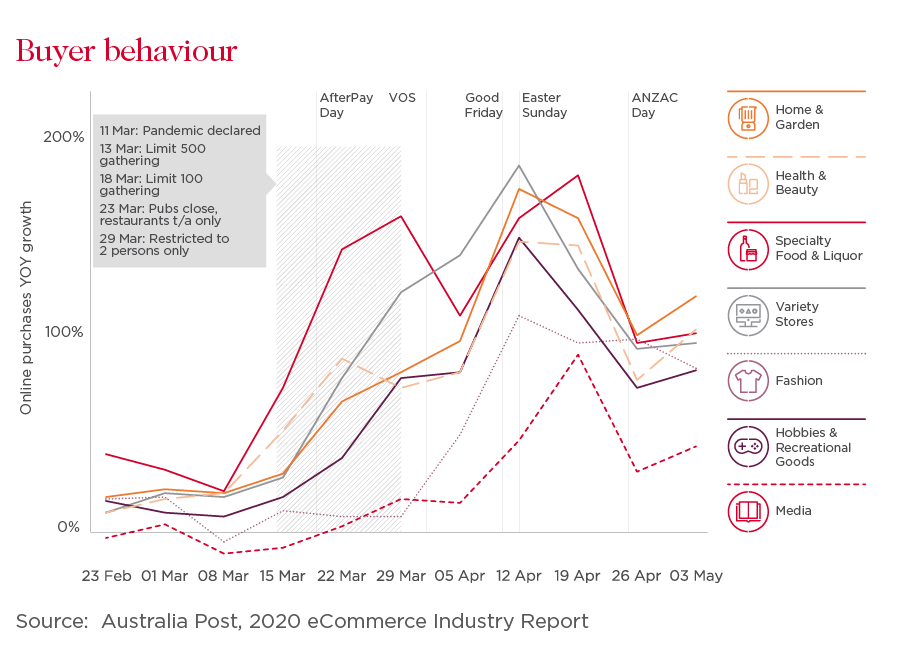 Australia Post has been at the forefront of the population-wide surge in online transacting, which had burgeoned well before the crisis. CEO Christine Holgate recently claimed that because of social distancing, self isolation and the closure of bricks and mortar stores, online has become “not just the preferred way to shop, but arguably the only way to shop”.