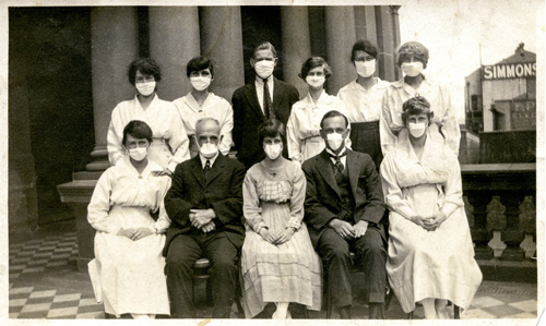 Hospital staff masked to protect against influenza, Kensington, NSW, 1919. (State Records NSW)