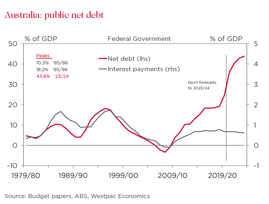But the government is rightly playing its role in supporting household incomes, incentivising business investment and boosting infrastructure during this once in a century shock. At 11 per cent of GDP, the 2020-21 deficit of $214bn is around the same proportion of GDP as most other developed nations. And as the Treasurer noted, net debt as a share of the economy is expected to peak at $966bn, or 43.8 per cent of GDP – half the UK, around a third of the US and around a quarter of Japan.