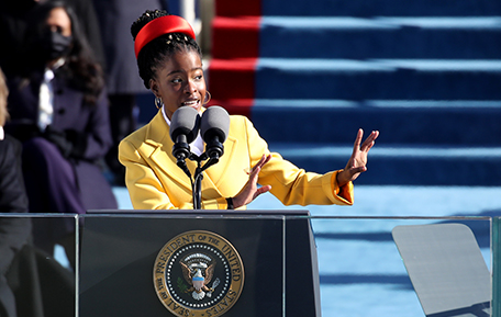 Youth Poet Laureate Amanda Gorman’s reads her powerful poem during Biden’s inauguration. (Getty)