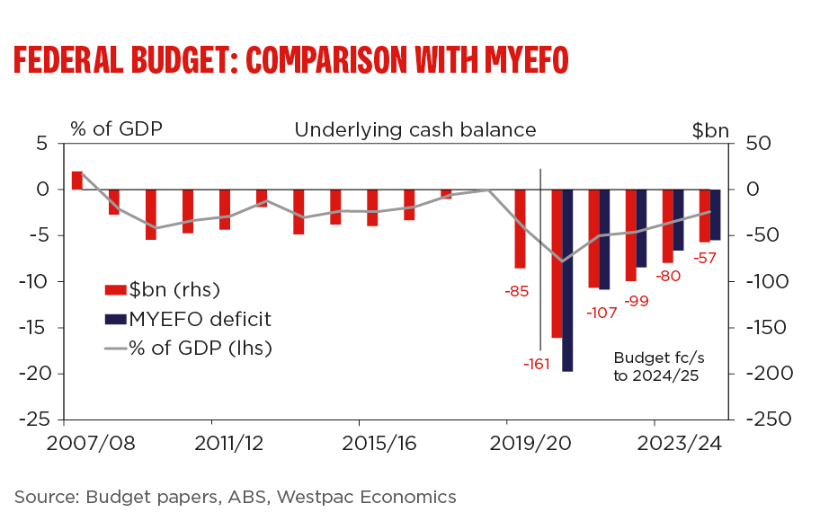 In 2020-21, the extraordinary improvement in the budget bottom line to a deficit of $161 billion came through the stronger than expected economic recovery and surging commodity prices. But from 2022-23, the government is forecasting larger deficits than previously, with no surplus in sight.