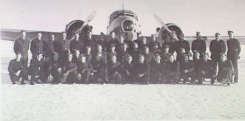 Eric Chenoweth (7th from right, back row), of Bank SA, member of 635 Squadron, killed in action over Europe 31 March 1945. (Australian War Memorial)