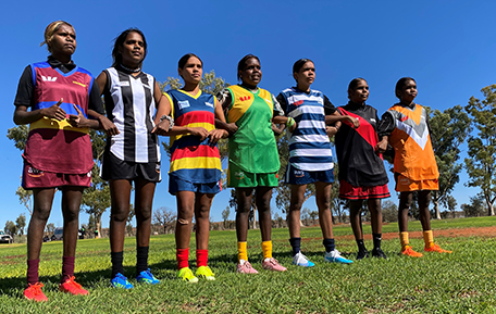 In 2023, NPYWC received an overwhelming response when it piloted a Women’s Aussie Rules 9’s program for teenage girls. While the interest had always been there, aspiring players had been held back by a lack of equipment and facilities, nearby competition, and in some cases an inhibition to play the game they love.