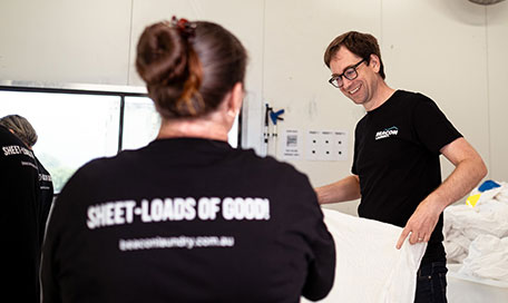Beacon Laundry is a commercial laundry which has just started operations in the northern New South Wales town of Bangalow. The social enterprise is creating upwards of 60 jobs, with new hires including First Nations people, single parents, people who are in recovery from addiction, and disadvantaged youths.