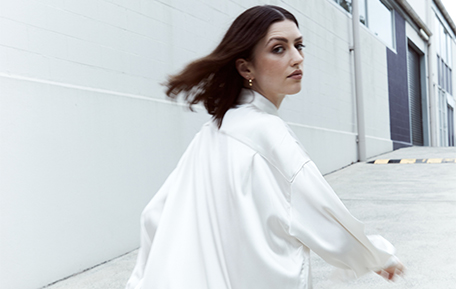 Model wears ivory satin shirt by The One Six. (Supplied)