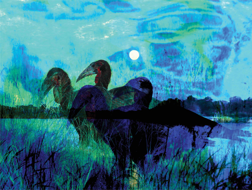 An image of ground hornbills by Justine Glen which features in her Reis Voyage collection. (Supplied)