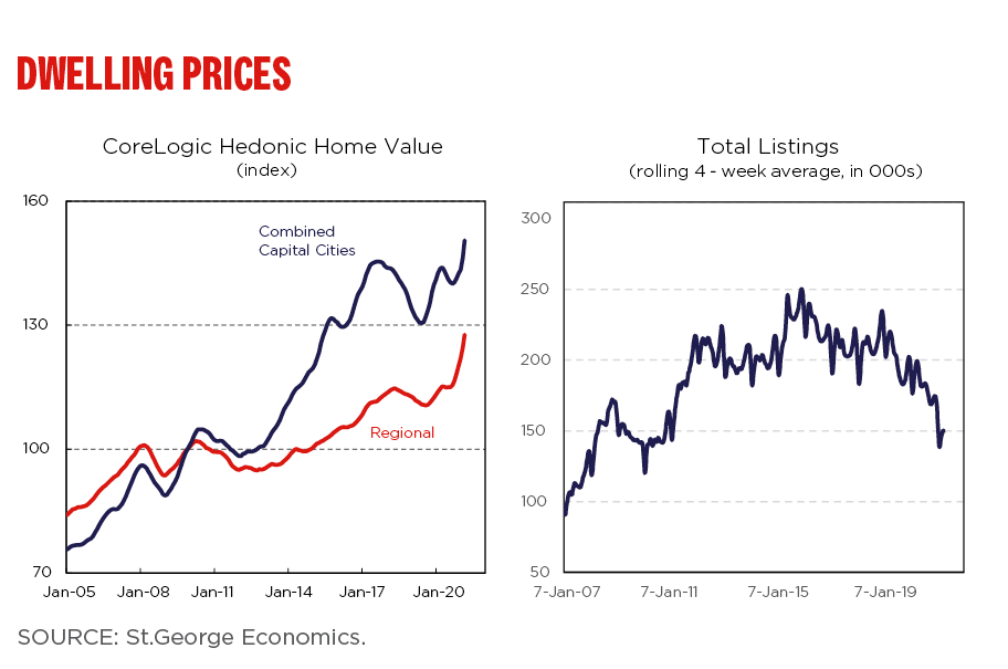 Today's monthly dwelling price update from Corelogic for March reported that Sydney rose a solid 3.7 per cent and Melbourne 2.4 per cent, which sees the larger capitals start to “outpace many of the smaller cities that were previously leading the charge in growth”. Westpac Economics analysis shows access to credit isn’t an issue for most, new lending for housing popping a “staggering” 76 per cent over the eight months from May to January 2021 to be 44 per cent above levels a year ago.