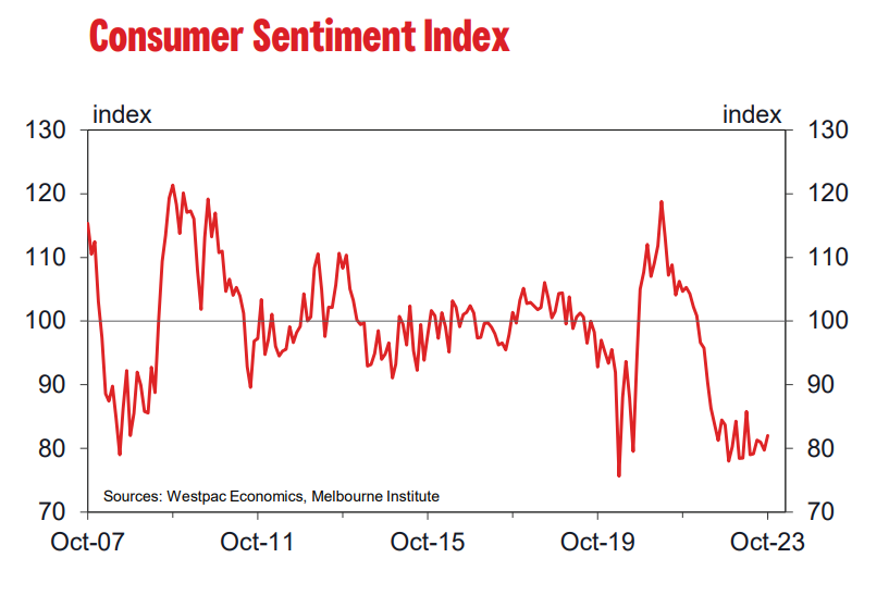 The Westpac-Melbourne Institute index of consumer sentiment rose 2.9 per cent to 82 in October, up from 79.7 in September.