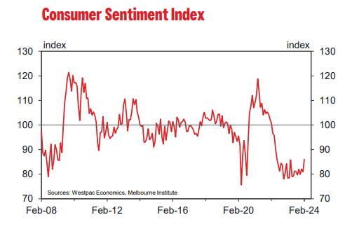 Taking a glass-half-full perspective, that could mean sentiment will recovery quite sharply once we get a clear signal from the RBA that inflation is under control and their focus has shifted to the timing of rate cuts.