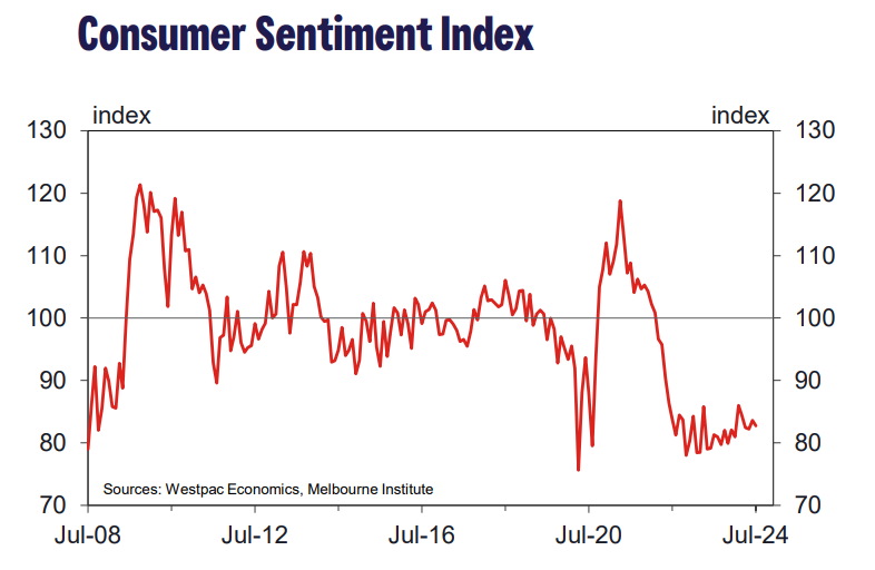 The Westpac Melbourne Institute consumer sentiment survey fell 1.1 per cent in July, underlining that households remain deeply pessimistic.