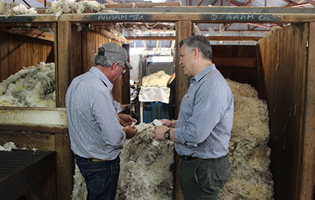 Anthony Miller (right) in a shearing shed in northern NSW.