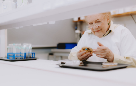 Dr Mary Cole pictured in her laboratory, where she studies Australian soil and the organisms living in it.