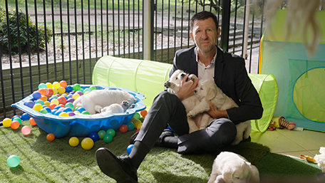 Westpac's Head of Fraud Ben Young and some puppies. (Josh Wall)