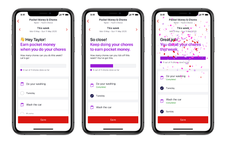 The Pocket Money and Chores feature is available within the Westpac App, turning earning and saving money into a fun and educational activity for kids.