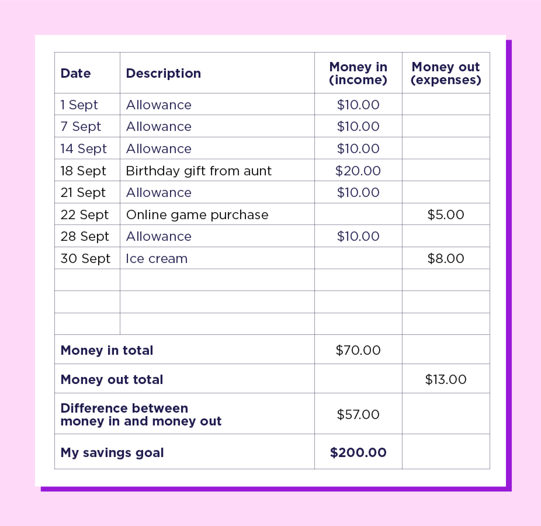 For example, if you got less money for your birthday than you thought you would, or the cost to catch the bus has increased, these are things you can’t control. But if you got less allowance because you didn’t do your chores, or you spent extra money on snacks — these are things you can consider changing next time around.