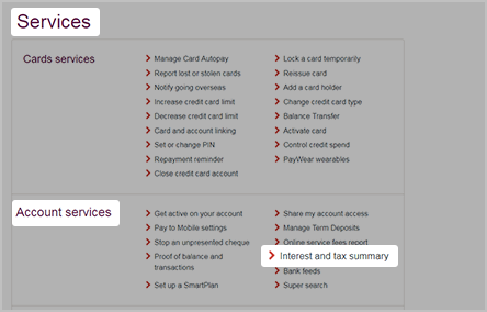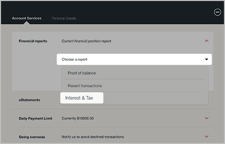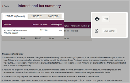 Download the Interest and Tax Summary for eligible accounts in Online Banking or the Westpac App.