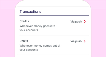 Get helpful reminders like deposit, withdrawal, credit card repayment and security notifications when there are changes to your accounts.
