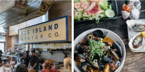 Oxbow Market is a large indoor European-style market with several restaurants, wine bars, and shops. The anchor of the offerings is Hog Island Oyster Co., known for sustainably farmed bivalves from Tomales Bay. Expect a few tables and counter seating where you can see a shucking show with fresh shellfish daily, like oysters, clam chowder, and steamed mussels paired with local wines, champagne, and craft beer.