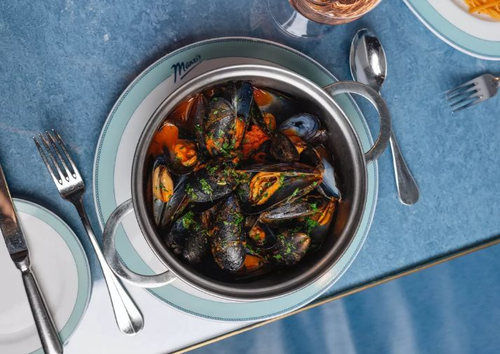 When we say this is a sea-themed restaurant, we don’t mean there are a few fishing nets strung about and the odd shell-patterned plate. We mean there are marble mermaids, painted frescoes lined with glowing clams, and a huge, wall-mounted marlin. Given all that, it’s hardly surprising that you’ll be dining on seafood here; the scallops are good, as are the mussels (order some fries to soak up the sauce), and you can’t beat sitting at the mermaidy bar with a Seaside Spritz.