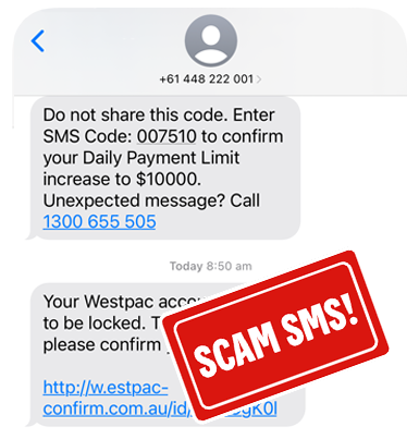 Scammers use impersonation tactics, such as Caller ID spoofing, to try and convince you this is a trusted message. Your phone will automatically group this scam SMS in with legitimate messages sent from the sender name "Westpac".