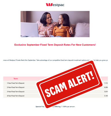 Be alert to fake Westpac Term Deposit offers